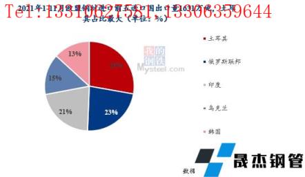 以歐盟2021年1-11月的成品厚壁無(wú)縫鋼管進(jìn)口量為例,前五進(jìn)口國(guó)月均進(jìn)口量148萬(wàn)噸,占?xì)W盟總進(jìn)口量的56%,其中土耳其、俄羅斯占比最大。而來(lái)自日本、韓國(guó)、印度、中國(guó)加起來(lái)的量占比不到6%,其中日本只占0.3%,中國(guó)占0.2%,幾乎可忽略不計(jì)。