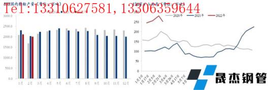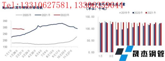 海外需求:國際鋼價(jià)震蕩下行,1月各國高爐生產(chǎn)運(yùn)行穩(wěn)定。截至2月25日,國際鋼鐵價(jià)格指數(shù)較上月底下降3.9個(gè)點(diǎn),降幅1.4%。世鋼協(xié)最新數(shù)據(jù)顯示,1月除中國外生鐵產(chǎn)量3841.1萬噸,日均123.9萬噸/天,環(huán)比上月增加0.1萬噸/天,增幅0.1%。1月各國高爐生產(chǎn)運(yùn)行穩(wěn)定,目前的鋼價(jià)對無縫厚壁鋼管廠家生產(chǎn)積極性仍支撐,但是2月和3月,俄烏軍事行動(dòng)讓其涉及的高爐生產(chǎn)充滿不確定性,兩國1月生鐵產(chǎn)量占全球除中國外生鐵產(chǎn)量的17%。