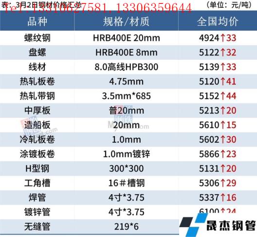 建筑厚壁無縫鋼管:3月2日,全國31個主要城市20mm三級抗震螺紋鋼均價4924元/噸,較上個交易日漲33元/噸。市場方面,冬奧會結束,北方地區限產逐漸放松,供應有所回升。不過近期多數地區天氣好轉,需求逐漸恢復,供需基本面有所好轉。短期來看,在需求逐漸釋放的前提下,現貨存有較強支撐。不過近期原料受政策性約束影響,或制約成材反彈空間。因此預計3日國內建筑厚壁無縫鋼管或將漲勢趨緩。