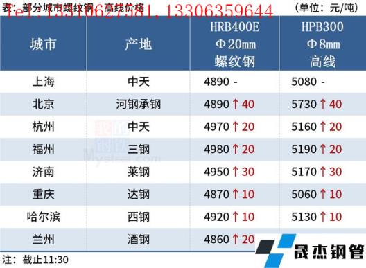 ◎杭州:3日早盤杭州優特鋼市場價格漲30-40。現45#Φ30以上主流價格杭5350淮5370南5340,元立(直發)5350中天5340東方5280,40Cr杭5560淮5600;齒輪萊鋼5750,鉻鉬建龍5910淮鋼5960。(單位:元/噸)