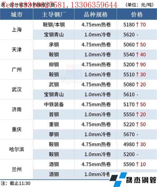 ◎上海:3日早盤熱卷市場價格漲70,現主流報價1500普5160-5180元/噸,1800報5270-5280元/噸;1500錳5320元/噸,1800報5420元/噸左右,2.75Q235B報5290-5320元/噸,2.75SPHC報5340元/噸左右。(單位:元/噸)