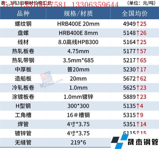 建筑厚壁無縫鋼管:3月3日,全國31個主要城市20mm三級抗震螺紋鋼均價4949元/噸,較上個交易日上漲25元/噸。供應方面,隨冬奧會結束,3月產量回升是確定性事件,在后期殘奧會及兩會結束后,產量后續的回升速度加快;成交來看,進入金3月,近期市場情緒好轉,且下游終端陸續復工,現貨價格跟隨期貨價格反彈后,成交也逐漸進入正軌。短期來看,在3月市場需求不斷回暖的情況下,還需繼續驗證在3月后期需求能否大規模的復蘇,若需求恢復力度尚可,疊加國內宏觀利好持續推進,國際俄烏事件持續發酵,從而支撐國內外厚壁無縫鋼管價格,因此預計4日國內建筑厚壁無縫鋼管或將繼續震蕩向上。