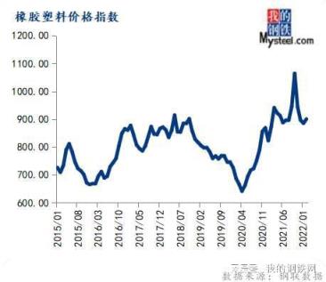 2月份橡膠塑料價格指數為900.76,環比上漲1.73%,同比上漲3.17%。