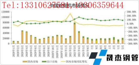 據(jù)市場情況了解到,2月份國內(nèi)市場預(yù)估銷量15000臺,國內(nèi)市場銷量增速降幅小幅收窄;出口市場預(yù)估銷量7000臺,增速87%左右。按照三月份的調(diào)研數(shù)據(jù)顯示,預(yù)計(jì)國內(nèi)工程機(jī)械市場仍然按照年度周期性進(jìn)入旺季。一季度的年度旺季的起始點(diǎn)在2月15日左右市場才有所啟動,2月整體的挖掘機(jī)市場情況環(huán)比情況好轉(zhuǎn),節(jié)后需求逐步恢復(fù),基建下行壓力緩解。當(dāng)前受國際形勢影響,挖機(jī)機(jī)的市場國內(nèi)外分配情況情況存在變動,整體趨勢走向還是向上為主。