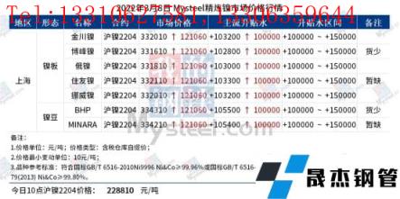 免責(zé)聲明:本網(wǎng)站(山東聊城晟杰無縫鋼管廠m.ahcom.com.cn)刊載的“鎳價(jià)極端行情之下 下游壓力凸顯”等均源于網(wǎng)絡(luò),版權(quán)歸原作者所有,且僅代表原作者觀點(diǎn),本文所載信息僅供參考。轉(zhuǎn)載僅為學(xué)習(xí)與交流之目的,如無意中侵犯您的合法權(quán)益,請(qǐng)及時(shí)聯(lián)系刪除。本網(wǎng)站刊登此篇文章并不意味著本站贊同其觀點(diǎn)或證實(shí)其內(nèi)容的真實(shí)性,我們不對(duì)其科學(xué)性、嚴(yán)肅性等作任何形式的保證。如果侵犯了您的版權(quán),請(qǐng)盡快聯(lián)系我們予以撤銷,謝謝合作!