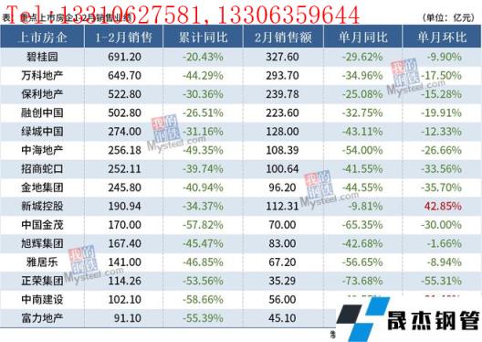 免責聲明:本網站(山東聊城晟杰無縫鋼管廠m.ahcom.com.cn)刊載的“15家重點房企2月銷售同比降幅擴大,房地產下行壓力持續”等均源于網絡,版權歸原作者所有,且僅代表原作者觀點,本文所載信息僅供參考。轉載僅為學習與交流之目的,如無意中侵犯您的合法權益,請及時聯系刪除。本網站刊登此篇文章并不意味著本站贊同其觀點或證實其內容的真實性,我們不對其科學性、嚴肅性等作任何形式的保證。如果侵犯了您的版權,請盡快聯系我們予以撤銷,謝謝合作!