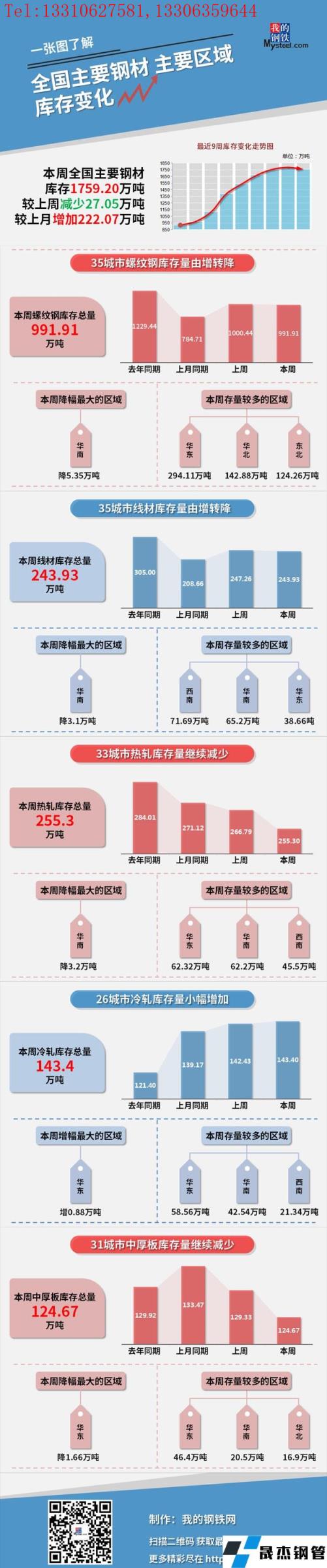 本周,全國主要厚壁無縫鋼管社會庫存1759.2萬噸,較上周減少27.05萬噸,較上月增加222.07萬噸;螺紋鋼庫存總量991.91萬噸。