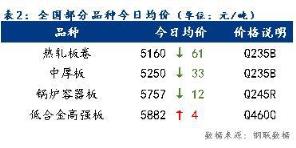 今日全國部分品種均價(jià)止跌回漲,其中低合金高強(qiáng)板漲幅為4元/噸。