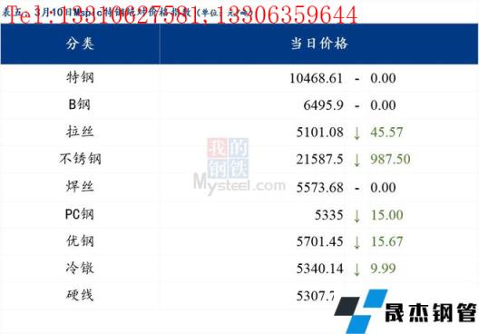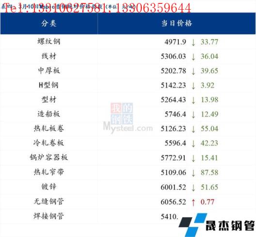 3月10日普鋼絕對價(jià)格指數(shù)變化:綜合指數(shù)5227.06,下跌43.55;螺紋鋼指數(shù)4971.9,下跌33.77;線材指數(shù)5306.03,下跌36.04;熱軋板卷指數(shù)5126.23,下跌55.04;冷軋板卷指數(shù)5596.4,下跌42.23;中厚板指數(shù)5202.78,下跌39.65。