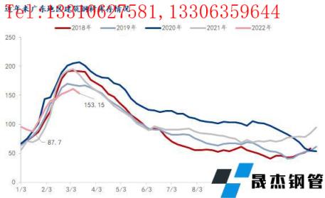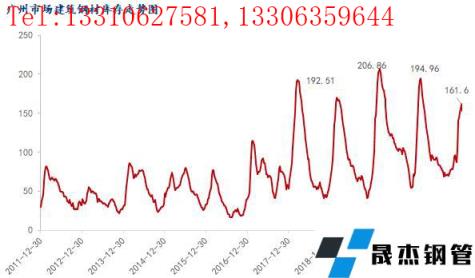 圖1:廣州市場建筑厚壁無縫鋼管庫存走勢圖 來源:鋼聯數據