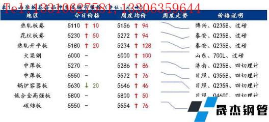 今日全國部分品種均價回漲,其中低合金高強板漲幅為20元/噸。