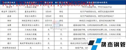 目前,各地均嚴格落實疫情防控政策,防止發(fā)生外溢,多數(shù)人員和貨物流通受到不同程度影響。根了解,目前山東地區(qū)鋼鐵企業(yè)生產暫時影響不大,但貿易流通和終端施工受到較大影響。山東資訊團隊近日調研了山東各地市的工地施工及貿易流通情況,詳情見下表: