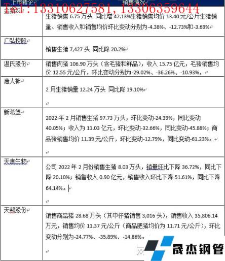 部分上市豬企2月份生豬銷(xiāo)售情況