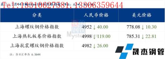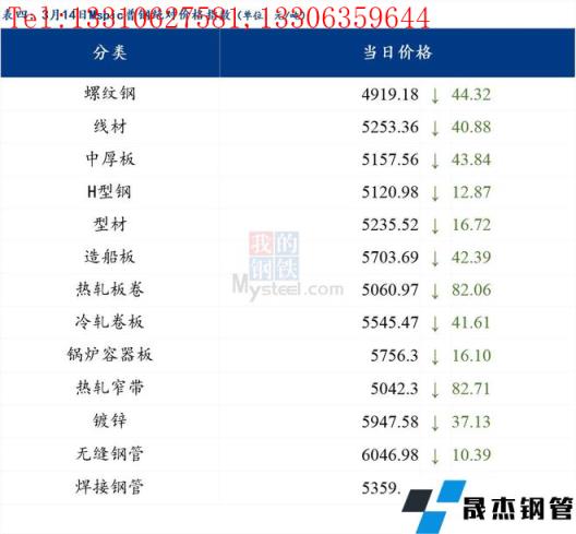 3月14日普鋼絕對價格指數(shù)變化:綜合指數(shù)5173.72,下跌51.11;螺紋鋼指數(shù)4919.18,下跌44.32;線材指數(shù)5253.36,下跌40.88;熱軋板卷指數(shù)5060.97,下跌82.06;冷軋板卷指數(shù)5545.47,下跌41.61;中厚板指數(shù)5157.56,下跌43.84。