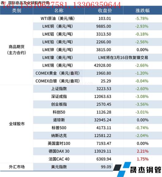 ◎ 倫敦金屬交易所(LME)稱鎳合約將在當地時間3月16日恢復交易,并對所有金屬的每日價格波動施加15%幅度的限制。