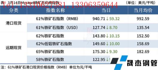 ◎ 3月14日,全國主港鐵礦石成交68.00萬噸,環比減31%;237家主流貿易商建材成交14.69萬噸,環比減24.4%。