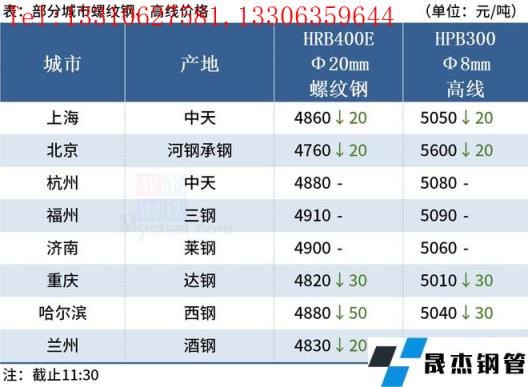 ◎上海:15日早盤建材市場價格下跌20。現螺紋4790-4830,西城抗震4820,其他4650-4710,興鑫抗震4720,聯鑫黃??拐?730,盤螺4930-5050,高線亞新4840。(單位:元/噸)