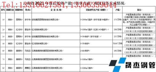 武鋼集團昆明鋼鐵股份有限公司、紅河鋼鐵有限公司、云南曲靖鋼鐵集團呈鋼鋼鐵有限公司、云南曲靖鋼鐵集團雙友鋼鐵有限公司4家鋼企合計退出煉鐵產能586萬噸,煉鋼產能523.647萬噸、焦炭產能80萬噸。鐵鋼產能共計1110萬噸。