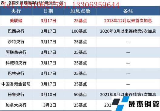 免責聲明:本網站(山東聊城晟杰無縫鋼管廠m.ahcom.com.cn)刊載的“美聯儲時隔三年首次加息,多國央行緊隨其后”等均源于網絡,版權歸原作者所有,且僅代表原作者觀點,本文所載信息僅供參考。轉載僅為學習與交流之目的,如無意中侵犯您的合法權益,請及時聯系刪除。本網站刊登此篇文章并不意味著本站贊同其觀點或證實其內容的真實性,我們不對其科學性、嚴肅性等作任何形式的保證。如果侵犯了您的版權,請盡快聯系我們予以撤銷,謝謝合作!