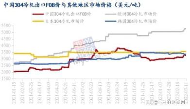 從中國海關數據顯示,2021年12月,中國大陸出口歐盟的不銹鋼冷軋量約至3.4萬噸,創近年來新高。2019年年均量約2502噸,2020年約2203噸,2021年約9623噸。
