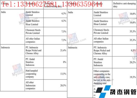 同樣,對其他印度及印尼不銹鋼進口稅率也有不同程度的提升,最高稅率印度可至42.8%,印尼可至39.8%。