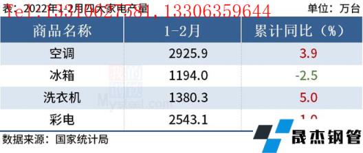 免責聲明:本網站(山東聊城晟杰無縫鋼管廠m.ahcom.com.cn)刊載的“統計局:1-2月中國四大家電產量3增1降”等均源于網絡,版權歸原作者所有,且僅代表原作者觀點,本文所載信息僅供參考。轉載僅為學習與交流之目的,如無意中侵犯您的合法權益,請及時聯系刪除。本網站刊登此篇文章并不意味著本站贊同其觀點或證實其內容的真實性,我們不對其科學性、嚴肅性等作任何形式的保證。如果侵犯了您的版權,請盡快聯系我們予以撤銷,謝謝合作!