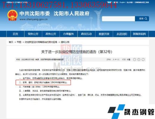 目前沈陽厚壁無縫鋼管中心批發市場已發布通告,19日起北一西路東西樓試試封閉管控、嚴禁人員進入辦公,出庫業務暫停、火車到達正常辦理;中國兵工物資125庫通告19日起嚴禁人員進入庫區辦公,出庫業務暫停、火車到達正常辦理;國家糧食和物資儲備局遼寧局二三九處通告19日起辦公樓嚴禁進出,庫內所有出入庫業務暫停、火運到達正常辦理。市內其他主要厚壁無縫鋼管市場反饋暫時正常辦公及出庫,但從防控指揮部通告內容來看、也有暫停營業的傾向。(通告見文末圖片)