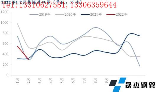 免責聲明:本網站(山東聊城晟杰無縫鋼管廠m.ahcom.com.cn)刊載的“2022年1-2月進口煤炭數據解析”等均源于網絡,版權歸原作者所有,且僅代表原作者觀點,本文所載信息僅供參考。轉載僅為學習與交流之目的,如無意中侵犯您的合法權益,請及時聯系刪除。本網站刊登此篇文章并不意味著本站贊同其觀點或證實其內容的真實性,我們不對其科學性、嚴肅性等作任何形式的保證。如果侵犯了您的版權,請盡快聯系我們予以撤銷,謝謝合作!