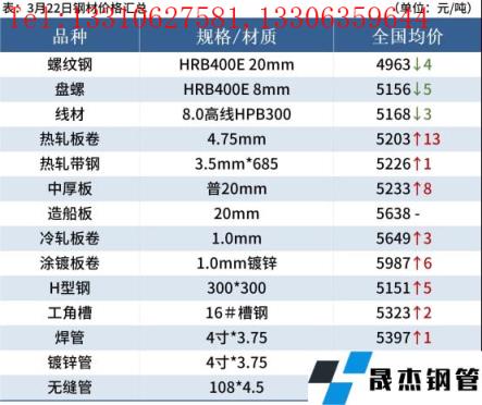 熱軋板卷:3月22日,全國24個(gè)主要城市4.75mm熱軋板卷均價(jià)5203元/噸,較上個(gè)交易日上漲13元/噸。黑色商品期貨尾盤小幅下跌,現(xiàn)貨成交情況開始轉(zhuǎn)弱,市場基本處于穩(wěn)盤,部分地區(qū)有暗降的情況。目前全國各無縫厚壁鋼管廠家檢修基本完畢,供應(yīng)逐漸恢復(fù)正常。需求方面來看,近期部分地區(qū)受疫情影響較重,需求釋放得到限制。綜合來看,近期市場基本處于平穩(wěn)階段,供大于需預(yù)期存在,市場整體恐慌情緒有加重趨勢,預(yù)計(jì)短期熱軋卷板價(jià)格或?qū)⒄鹗広吶鯙橹鳌?/p>