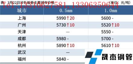 冷軋板卷:3月22日,全國24個(gè)主要城市1.0mm冷卷均價(jià)5649元/噸,較上個(gè)交易日上漲3元/噸。今日黑色系期貨盤面走勢較強(qiáng),部分區(qū)域熱、冷價(jià)差處于持續(xù)收窄態(tài)勢;受疫情影響,運(yùn)輸方面受阻,到貨情況不佳,部分市場現(xiàn)有庫存不多壓力較小,貿(mào)易商以出貨回籠資金為主。預(yù)計(jì)23日國內(nèi)冷軋板卷價(jià)格或?qū)⒄鹗庍\(yùn)行。
