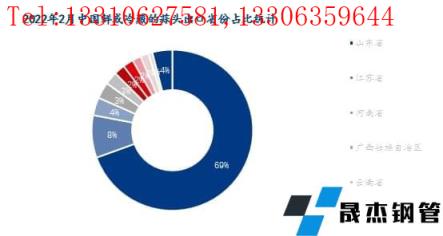 2022年2月中國其他鮮或冷藏的大蒜主要出口省份為山東省、河南省。其中山東省本月出口量為0.23萬噸,環比減少0.10萬噸,降幅為30.3%,占比55%;河南省本月出口量為0.16萬噸,環比持平,占比39%。