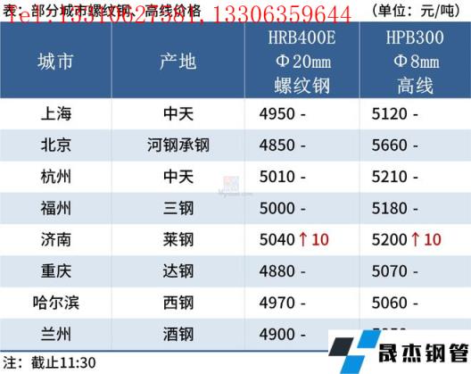 ◎濟南:23日早盤建材市場價格漲10。萊鋼螺紋4970,永鋒、石橫螺紋4960,永鋒、石橫盤螺5200。(單位:元/噸)