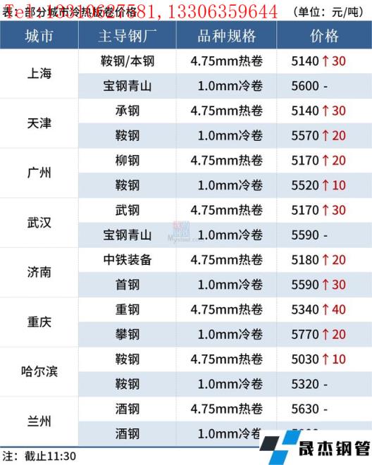 ◎上海:24日早盤熱卷市場價格漲30,現主流報價1500普5120-5140元/噸,1800報5230-5240元/噸;1500錳5290元/噸,1800報5390元/噸左右,2.75Q235B報5240-5260元/噸,2.75SPHC報5300元/噸左右。(單位:元/噸)