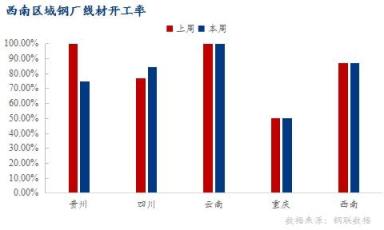 重慶區域:本周重慶區域線材生產情況較上周無明顯變化,線材產能利用率35.51%,環比持平;開工率50%,環比持平;周產量1.05萬噸,環比持平。