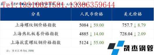 5月7日普鋼絕對價格指數變化:綜合指數5264.58,下跌33.42;螺紋鋼指數5074.36,下跌37.06;線材指數5443.68,下跌34.76;熱軋板卷指數5042.14,下跌33.61;冷軋板卷指數5545.09,下跌35.82;中厚板指數5221.88,下跌14.52。