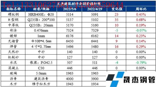 免責聲明:本網站(山東聊城晟杰無縫鋼管廠m.ahcom.com.cn)刊載的“建筑原材料周報(5.2-5.6)”等均源于網絡,版權歸原作者所有,且僅代表原作者觀點,本文所載信息僅供參考。轉載僅為學習與交流之目的,如無意中侵犯您的合法權益,請及時聯系刪除。本網站刊登此篇文章并不意味著本站贊同其觀點或證實其內容的真實性,我們不對其科學性、嚴肅性等作任何形式的保證。如果侵犯了您的版權,請盡快聯系我們予以撤銷,謝謝合作!