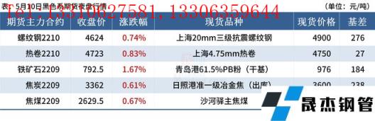 ◎ 5月10日焦炭市場偏弱運行,部分無縫厚壁鋼管廠家開啟第二輪降價,降幅為200元/噸,主流無縫厚壁鋼管廠家暫觀望為主。焦炭開工小幅微增,場內基本零庫存運行,即產即銷,多以積極出貨為主。
