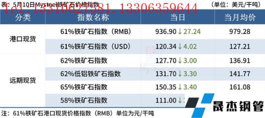 ◎ 5月10日,全國主港鐵礦石成交88.30萬噸,環比減25.8%;237家主流貿易商建材成交13.78萬噸,環比減2.9%。