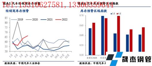 據(jù)調(diào)研,受疫情影響,人員居家辦公,用車(chē)頻次大幅下降,且疫情對(duì)居民收入沖擊,打擊了居民消費(fèi)欲望。且疫情管控對(duì)線下4S零售也造成不同程度影響,中汽協(xié)數(shù)據(jù)顯示,有34個(gè)城市出現(xiàn)經(jīng)銷(xiāo)商因疫情防控閉店的現(xiàn)象。2022年4月中國(guó)汽車(chē)經(jīng)銷(xiāo)商庫(kù)存預(yù)警指數(shù)達(dá)到了66.4%,達(dá)到今年新高,東部地區(qū)4月庫(kù)存預(yù)警指數(shù)環(huán)比3月上升8.8個(gè)百分點(diǎn)。