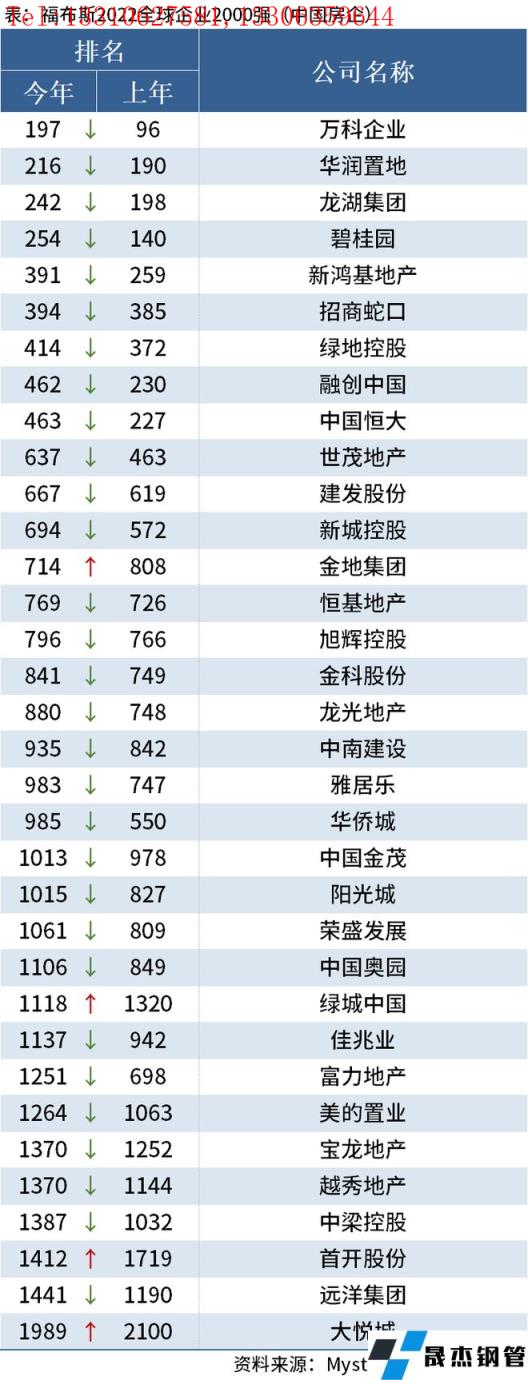 5月12日,福布斯2022全球企業2000強發布。據統計,共有34家中國房地產企業上榜,其中金地集團、綠城中國、首開股份與大悅城四家房企排名有所上升,剩余30家上榜房企排名均出現下降。