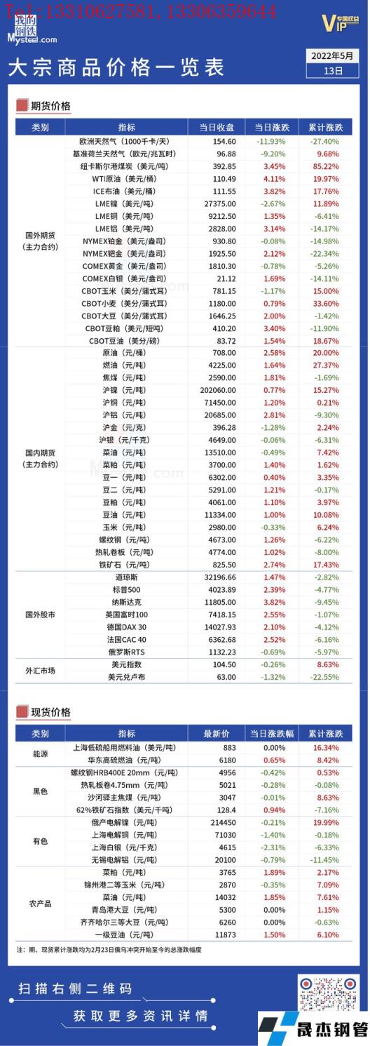 免責聲明:本網站(山東聊城晟杰無縫鋼管廠m.ahcom.com.cn)刊載的“俄烏局勢丨大宗商品價格一覽表(5月13日)”等均源于網絡,版權歸原作者所有,且僅代表原作者觀點,本文所載信息僅供參考。轉載僅為學習與交流之目的,如無意中侵犯您的合法權益,請及時聯系刪除。本網站刊登此篇文章并不意味著本站贊同其觀點或證實其內容的真實性,我們不對其科學性、嚴肅性等作任何形式的保證。如果侵犯了您的版權,請盡快聯系我們予以撤銷,謝謝合作!