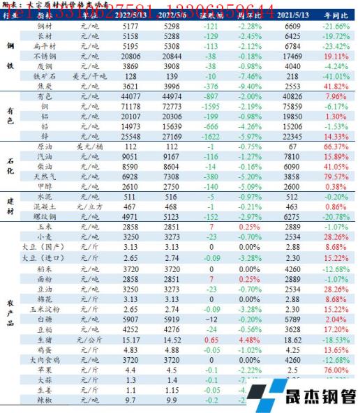 免責聲明:本網站(山東聊城晟杰無縫鋼管廠m.ahcom.com.cn)刊載的“周報:大宗工業原材料、能源及農產品價格周報(5.09-5.13)”等均源于網絡,版權歸原作者所有,且僅代表原作者觀點,本文所載信息僅供參考。轉載僅為學習與交流之目的,如無意中侵犯您的合法權益,請及時聯系刪除。本網站刊登此篇文章并不意味著本站贊同其觀點或證實其內容的真實性,我們不對其科學性、嚴肅性等作任何形式的保證。如果侵犯了您的版權,請盡快聯系我們予以撤銷,謝謝合作!