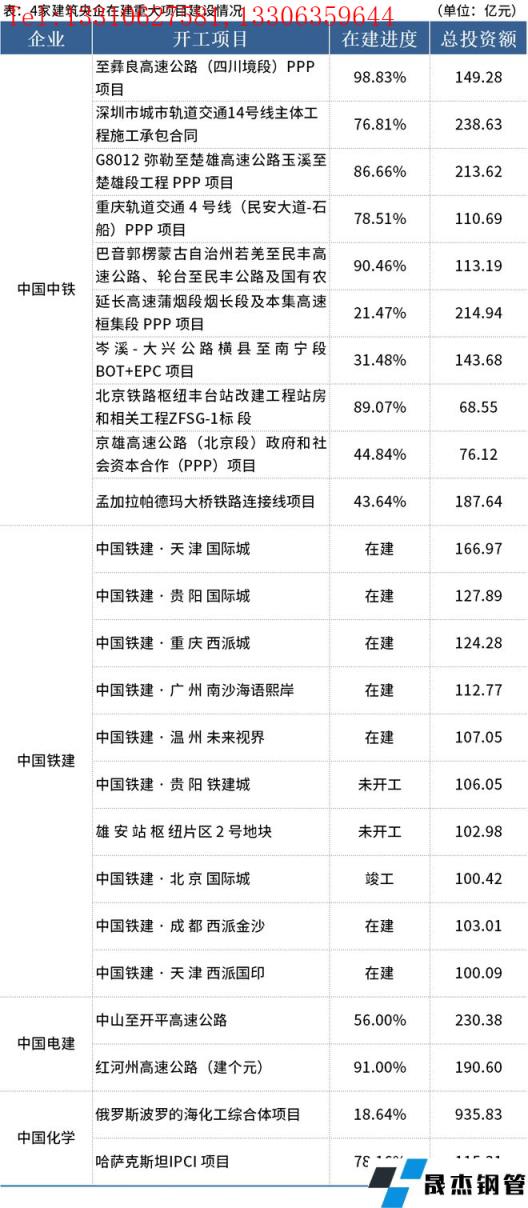 據(jù)梳理,中國中鐵、中國鐵建、中國電建、中國化學(xué)4家企業(yè)公布了在建重大項(xiàng)目情況,具體如下: