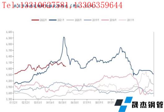 自四月下旬疫情在北京小范圍蔓延以來,京津冀建筑厚壁無縫鋼管價格震蕩趨弱運行。回顧北京市場今年的價格情況, 2月:需求提前收尾,生產節奏緩慢, 成本支持較高,價格小幅探漲30元/噸;3月:原料價格大漲,產量繼續縮減,庫存小幅去化,價格大幅走強220元/噸;4月,利好政策頻出,成本支撐較強,疫情反復影響,庫存去化受阻,價格上漲動力不強,僅趨強70元/噸。