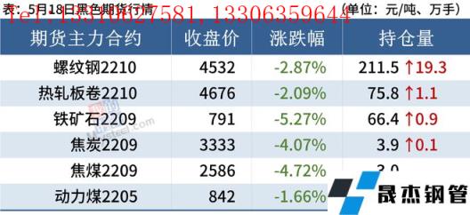 熱軋板卷:5月18日,全國24個主要城市4.75mm熱軋板卷均價4967元/噸,較上個交易日下跌46元/噸。黑色商品期貨整體下挫,成交明顯疲軟,市場情緒偏空。近日盤面的持續走弱,市場需求低迷態勢仍在延續,目前受疫情制約因素依然明顯,從華東地區來看,需求短期難有明顯增量;另一方面,近期供應鏈渠道尚未完全打通,使得市場信心不足,疊加地產方面的利空數據,短期價格將承壓趨弱。預計19日全國熱軋板卷或將趨弱運行為主。