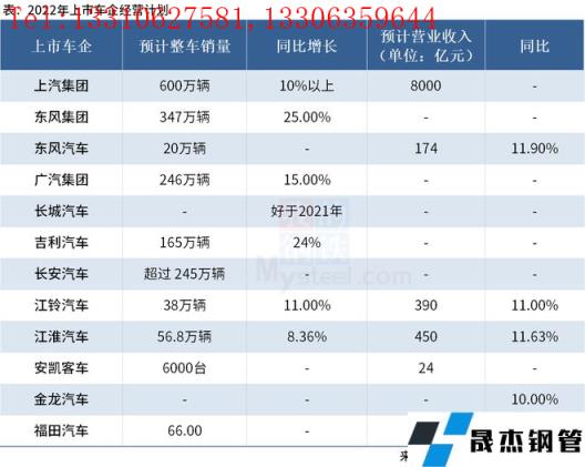 免責聲明:本網站(山東聊城晟杰無縫鋼管廠m.ahcom.com.cn)刊載的“12家上市車企公布2022年經營計劃”等均源于網絡,版權歸原作者所有,且僅代表原作者觀點,本文所載信息僅供參考。轉載僅為學習與交流之目的,如無意中侵犯您的合法權益,請及時聯系刪除。本網站刊登此篇文章并不意味著本站贊同其觀點或證實其內容的真實性,我們不對其科學性、嚴肅性等作任何形式的保證。如果侵犯了您的版權,請盡快聯系我們予以撤銷,謝謝合作!