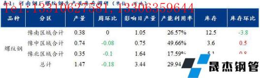1、調(diào)研數(shù)據(jù)顯示,統(tǒng)計的河南地區(qū)10家建筑厚壁無縫鋼管樣本無縫厚壁鋼管廠家中,河南省建材無縫厚壁鋼管廠家螺紋鋼日產(chǎn)量1.47萬噸,產(chǎn)量較上周減少0.18萬噸。檢修/限產(chǎn)影響建材日產(chǎn)量為3.44萬噸,產(chǎn)能利用率為29.94%,較上周減少3.67%。