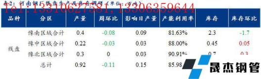 1、調(diào)研數(shù)據(jù)顯示,統(tǒng)計的河南地區(qū)10家建筑厚壁無縫鋼管樣本無縫厚壁鋼管廠家中,河南省無縫厚壁鋼管廠家線盤日均產(chǎn)量0.92萬噸,較上周產(chǎn)量減少0.11萬噸;線盤產(chǎn)能利用率85.98%,較上周減少10.28%。
