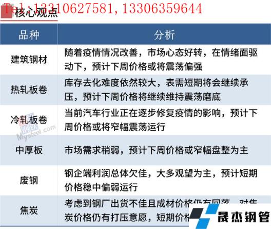宏觀面,今日央行宣布5年期LPR下調(diào),也意味著個(gè)人住房貸款利率最低可達(dá)首套房4.25%,利好房地產(chǎn)市場。產(chǎn)業(yè)面,調(diào)研85家獨(dú)立電弧爐無縫厚壁鋼管廠家平均虧損86元/噸,本周電爐廠減產(chǎn)力度明顯加大,高爐廠鐵水產(chǎn)量變化不大。本周鋼市成交量大起大落,體現(xiàn)需求不穩(wěn)定,市場信心不足。短期鋼價(jià)漲跌反復(fù),處于震蕩筑底階段,隨著國內(nèi)疫情防控形勢進(jìn)一步好轉(zhuǎn),預(yù)計(jì)國內(nèi)經(jīng)濟(jì)逐步復(fù)蘇,鋼市供需壓力逐步緩解,中期來看有望呈現(xiàn)震蕩反彈行情。