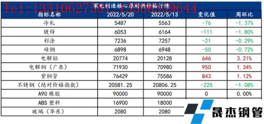 免責聲明:本網站(山東聊城晟杰無縫鋼管廠m.ahcom.com.cn)刊載的“家電原材料周報(5.16-5.20)”等均源于網絡,版權歸原作者所有,且僅代表原作者觀點,本文所載信息僅供參考。轉載僅為學習與交流之目的,如無意中侵犯您的合法權益,請及時聯系刪除。本網站刊登此篇文章并不意味著本站贊同其觀點或證實其內容的真實性,我們不對其科學性、嚴肅性等作任何形式的保證。如果侵犯了您的版權,請盡快聯系我們予以撤銷,謝謝合作!